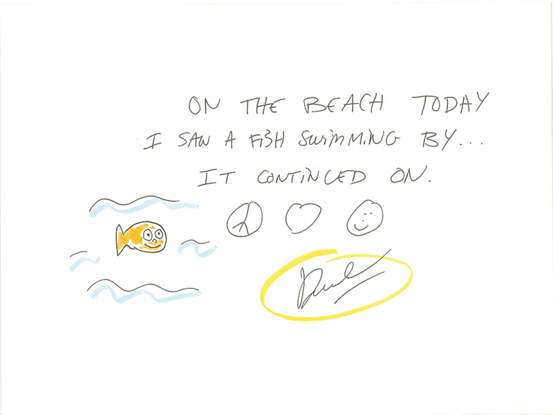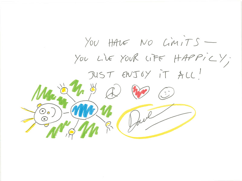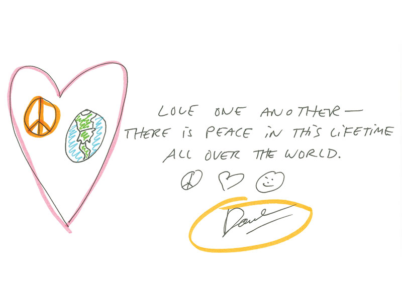 Dave’s drawings and often inspiring Haikus help him reconnect to the path of peace, love, and joy that he wants to take through the world, the one he wants his art to help others find again for themselves.